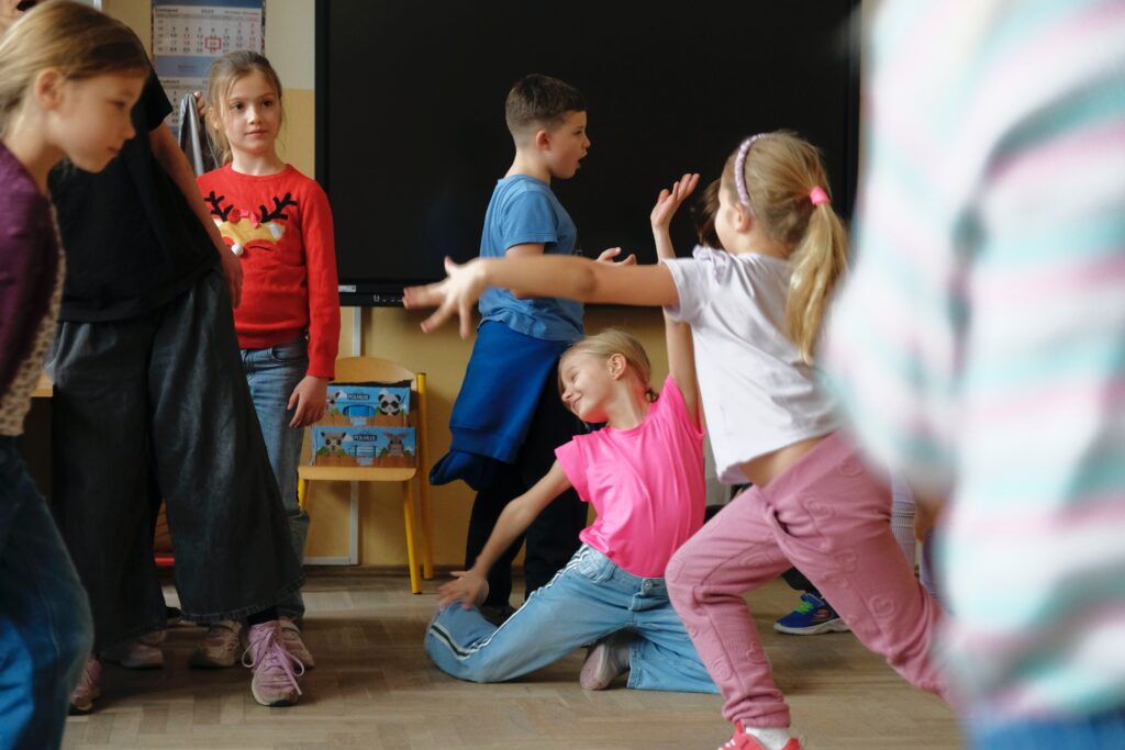 Podczas zajęć z Aurorą Lubos w SP nr 50 w Gdańsku widać, jak taniec pozwala wyrażać emocje, potrzeby i pomysły poprzez ruch. Poniżej kilka kadrów z tych warsztatów.